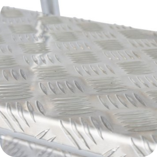 - Pohodlné a bezpečné stupně: Nášlapy 240 mm z hliníkové šachovnice s protiskluznou úpravou zaručují komfortní a bezpečný výstup a sestup.