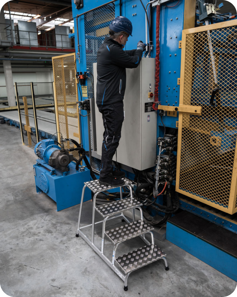 - Vysoká nosnost: Schůdky unesou až 150 kg, takže se na ně můžete spolehnout i při práci s těžkým nářadím.